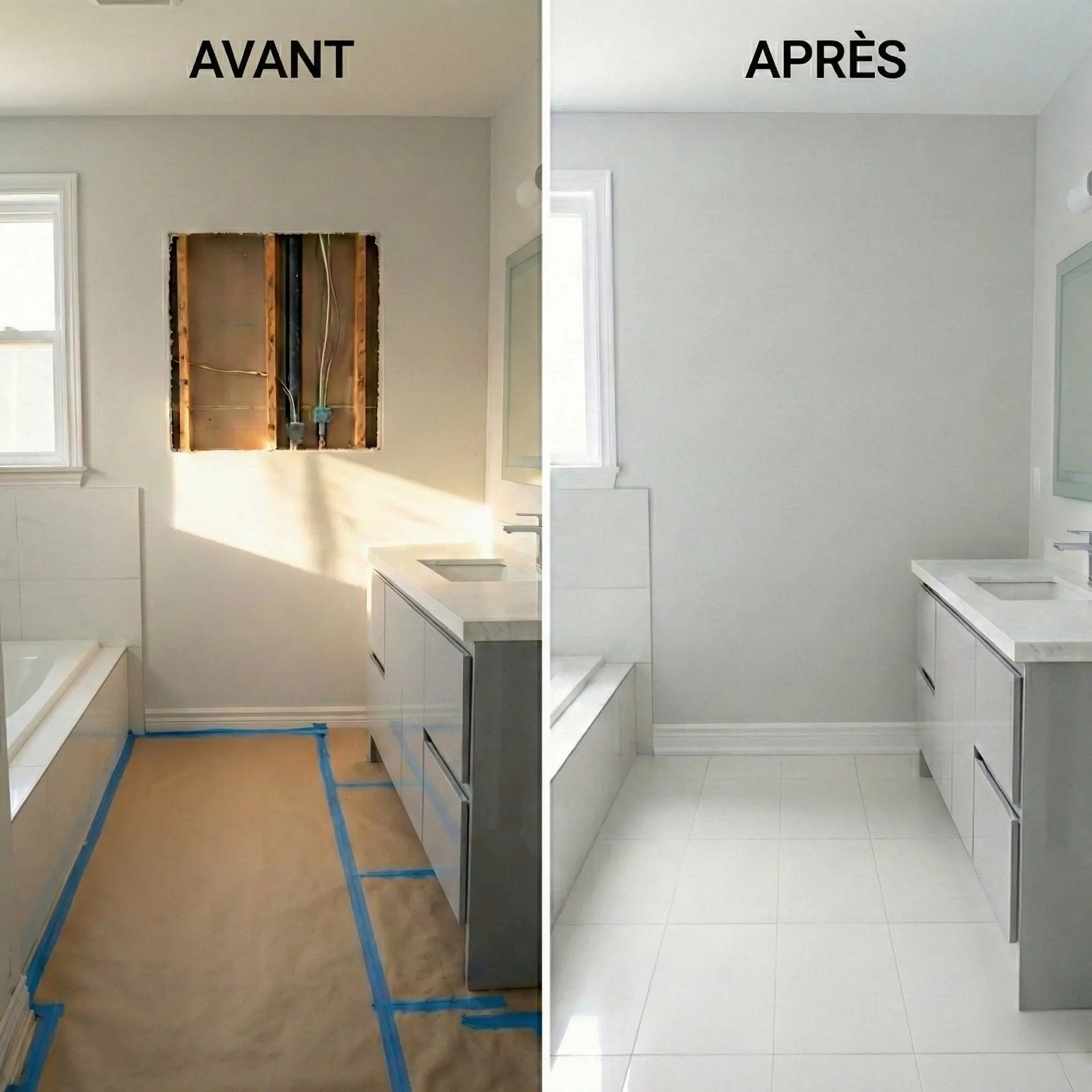 Oui, notre équipe est qualifiée à la fois pour les réparations de gypse et les travaux de peinture. Cela nous permet d'assurer une continuité et une haute qualité dans l'exécution de l'ensemble de votre projet.
