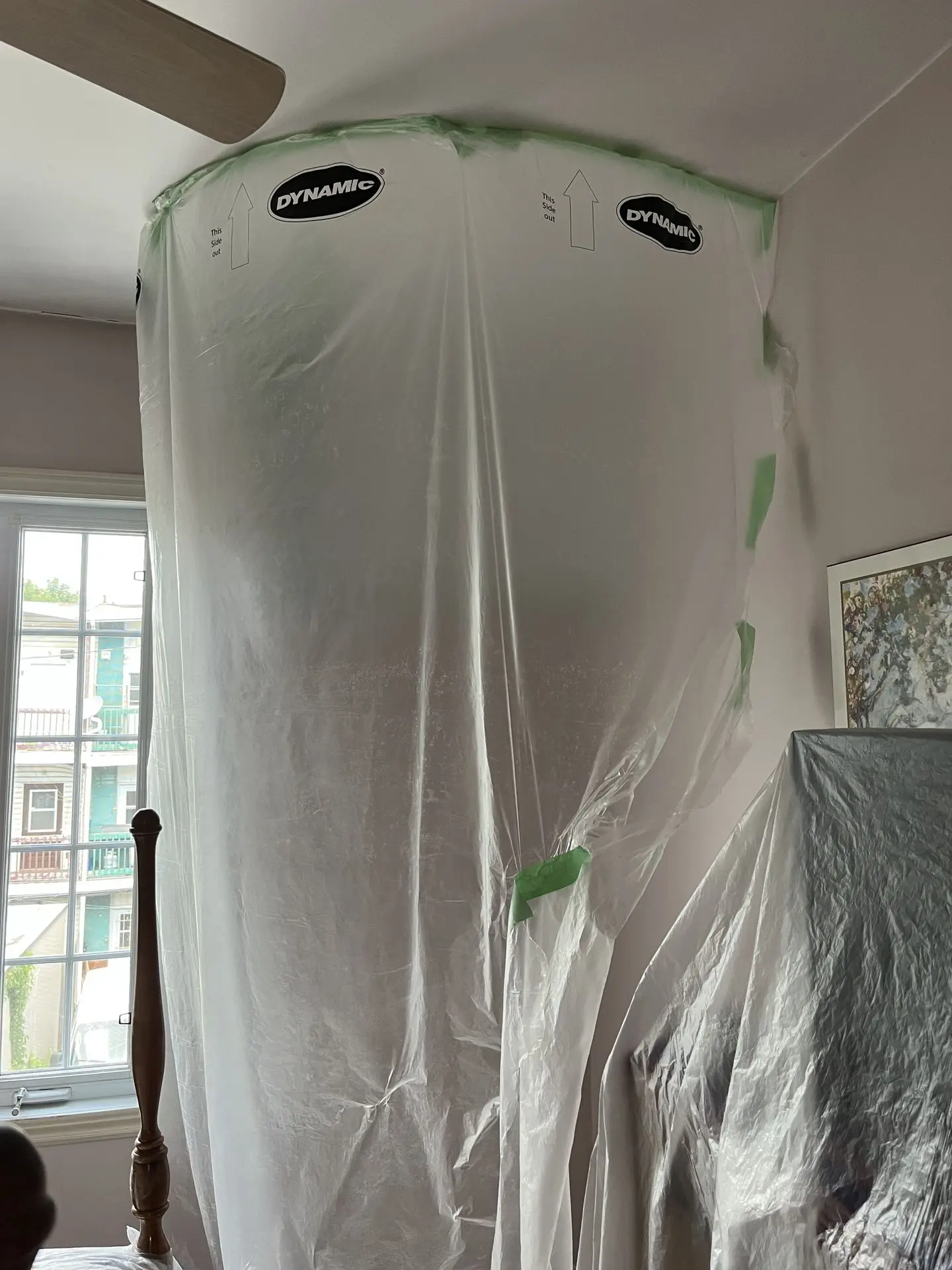 Nous isolons la zone de travail avec du plastique ou des bâches spéciales pour contenir la poussière. Cela empêche toute migration de poussière vers d'autres parties de la maison ou de l'établissement.